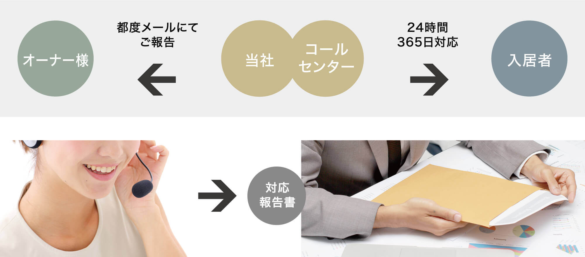 入居者からの連絡を専用のコールセンターで集中的に管理します。質の高い対応により、入居者満足度を向上させることが可能です。