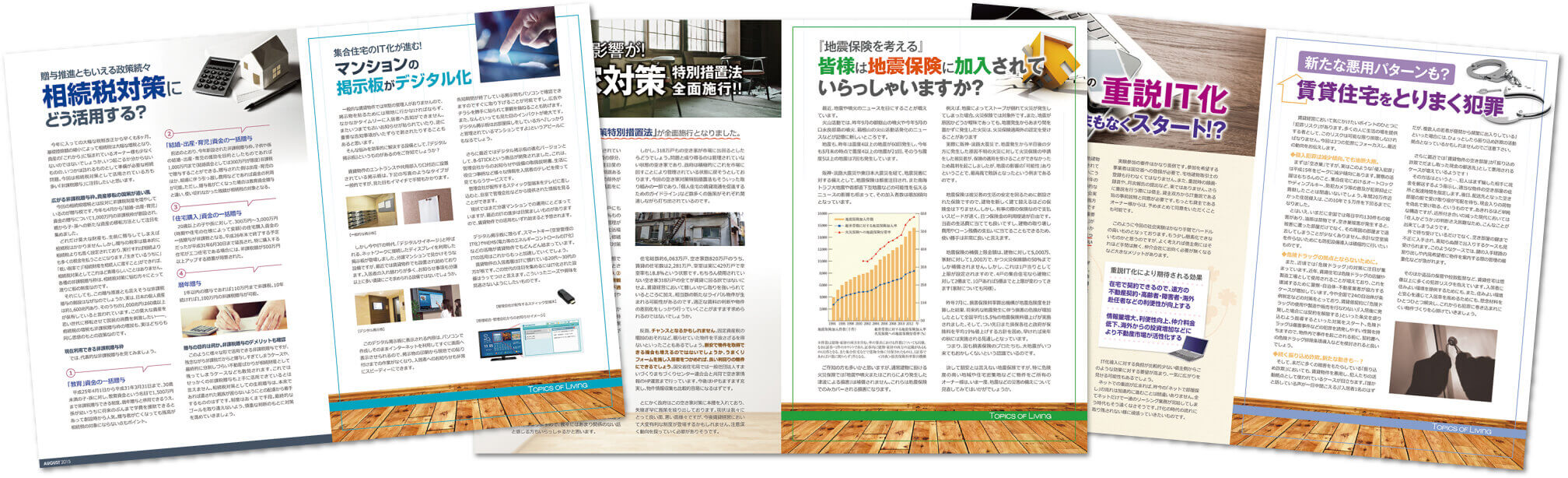 最新の賃貸市況をはじめ、入居者ニーズや空室対策、法改正や免税措置など、賃貸経営に役立つ内容の情報誌を毎月1回お送りします。
