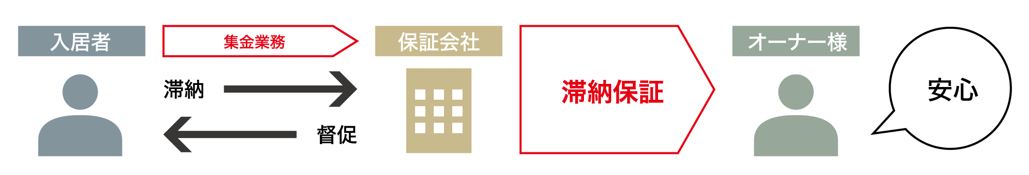 家賃等の滞納が発生した際にも、保証会社立替払いによって遅滞なく家賃を送金します。